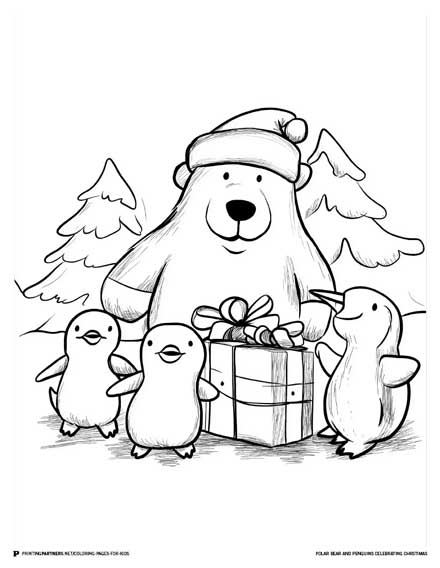 Polar Bear And Penguins Celebrating Chrstimas Christmas 42