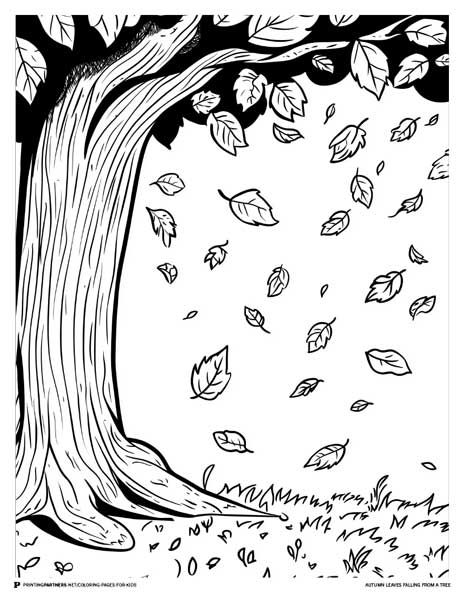 Autumn leaves gently falling from a tree, capturing the beauty of fall. A relaxing seasonal coloring page.