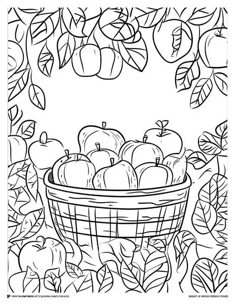A basket full of freshly picked apples, ideal for a harvest-themed coloring activity.