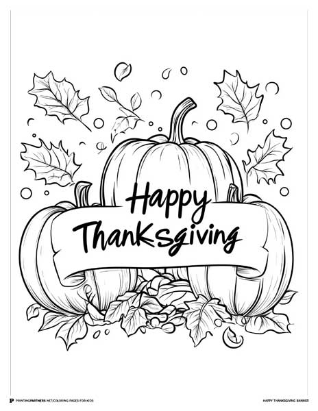 A vibrant 'Happy Thanksgiving' banner, a simple yet festive coloring page to brighten up the season.