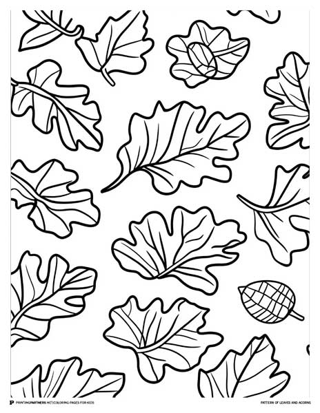 A detailed pattern of leaves and acorns, great for kids who enjoy intricate designs and autumn themes.