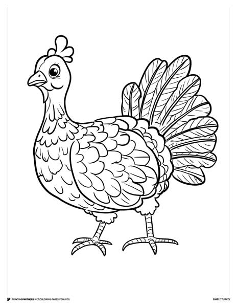 A classic turkey with simple lines, ideal for younger children learning about Thanksgiving traditions.