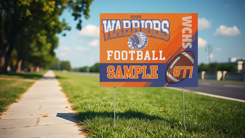 Perfect for promoting games, fundraisers, and school spirit. We produce thousands of custom yard signs each year for local schools, athletic programs, and booster clubs. Ask us about building a custom sports sign storefront where families and supporters can order directly. A portion of every sale goes back to the school, helping raise funds while building community pride.